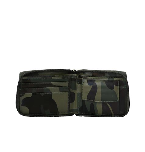 Camouflage printed zip around wallet, has a zip2 main compartments, has a non detachable flap3 card holders, 2 slip pockets, has a flap coin pocketWarranty: 15 daysWarranty provided by brand owner/manufacturerSize & FitHeight:Width:Material & CarePUWipe with a clean, dry cloth when needed