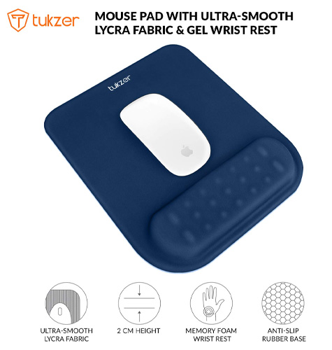 Upgraded Memory Foam Mouse Pad Wrist Rest: Made of memory foam, Tukzer mouse pad designed with ergonomic soft wrist support, helps keep your wrist in a proper position and reduce pressure, pinching of the wrist, make your mouse use more precise and comfortable. Designed for Gamers, Office, Home-Office, Ideal to use with Windows Laptop Computer.Smooth Lycra fabric provides accurate mouse tracking & breathable touching and not easy to collect heat - The fabric is breathable, Soft & Smooth. Not easy to collect heat. Not irritate to skin. Comfortable to the wrist. The fabric surface provides smooth mouse glide and accurate mouse tracking movement. You could move the mouse fast and freely.Well press handing process makes edges not curling up & memory foam pad not coming out after long time usage - The fabric stays with rubber base tightly and not easy to separate with well press handing process. Not easy to curl up at the edges. The memory foam stays in place to provide soft support without deformation.Non-slip Rubber Base - Anti-slip rubber surface firmly grips the desktop, preventing sliding to offer you stable operation and allowing you to freely move your mouse without interruption, providing perfect gaming or working experience. Special wave design offers ergo support for your wrists.Size - 9.7-Inch x 8.2-Inch X0.8-Inch, our mouse pad with wrist support fits well in a busy work area. The ergonomic design provides more space for your mouse to move.