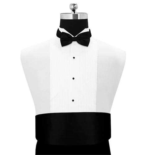 Black Satin Cummerband and Bow Tie Set Size & Fit Cummerbund: 57.5 cm x 13.5 cm Bowtie: 12.5 cm x 6 cm (All dimension are excluding belt size) Material & Care Satin Dry clean
