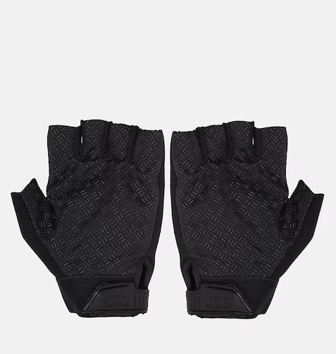 A pair of black Solid half-finger gloves, each has a slip-on closureFeatures: Anti-slipSize & FitPalm width: 10 cm (each)Material & CareElastic lycra