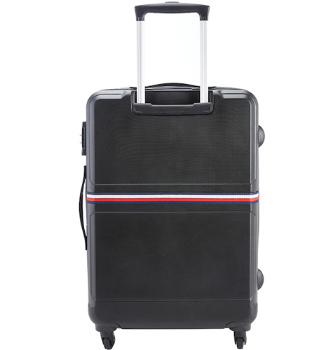 Black solid hard-sided medium trolley suitcase, secured with a TSA lock Three handles on the top, Has four 360-degree rotatable corner-mounted skate wheels One main compartment secured with a zip closure Three inner pocket, Features: Water resistance Warranty: 3 years against manufacturing defects Warranty provided by Brand/Manufacturer Size & Fit Height: 66 cm Width: 47 cm Depth: 26 cm Volume: 80.6 litres Material & Care 100% polycarbonate Wipe with a clean, dry cloth when needed
