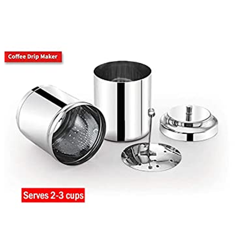 STRONG COFFEE: Stainless steel coffee filter is much better than instant coffee as slow-drip process is enhanced by many small holes that distribute coffee in all water evenly. Without milk added, the decoction is stronger than espresso.DURABLE & HANDY: It's made up of steel and can be used for may years. Easy to clean and comes handy when you want to travel. Just 3 small pieces make this south Indian coffee filter. 2 chambers(upper and lower), one press to dab coffee.TRADITIONAL COFFEE MAKER: It has a fine mesh for filtering the coffee decoction.The upper cup holds the coffee grounds, and it has holes that let the brew drip into the lower cup. The strong decoction is collected in the lower cup.PROCESS TO MAKE: Add one or two tablespoon of Indian coffee according to your taste and hot water to brew a perfect cup of Indian coffee. Hot water will help coffee granules to dissolve and make sure you damp with presser.GIFT FOR COFFEE LOVER: This can be perfect gift for your family and friends in any occasion. If you are coffee lover then this product you should definitely buy. Make your south Indian coffee filter.